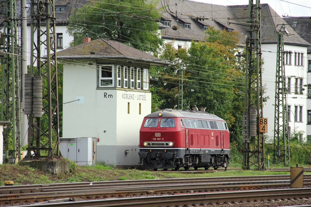 Kurhessenbahn/DB 218 387-9 in Koblenz-Lützel am 29.9.2012