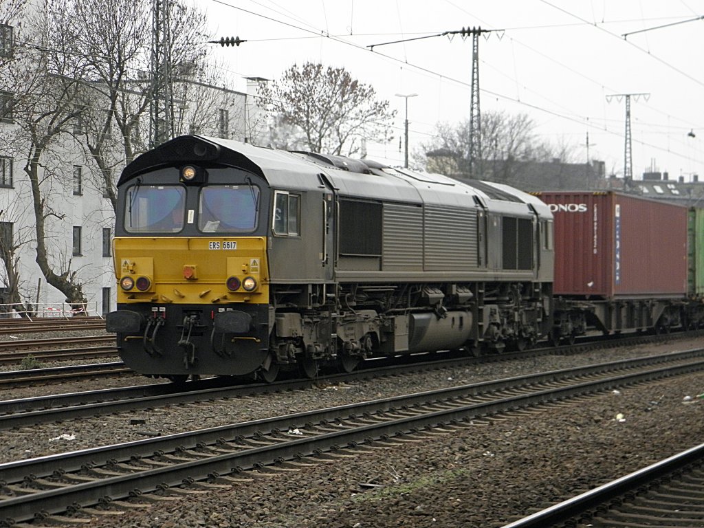 ERS Railways Class 66 mit einem Container Zug in Köln West am 20.2.2011