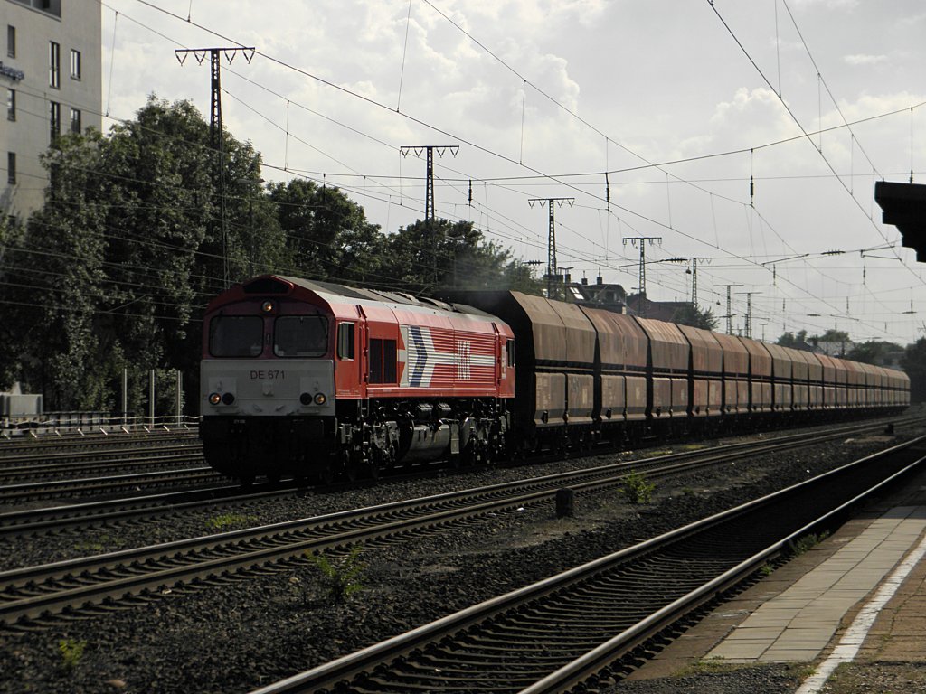 HGK Class 66 DE 671 mit einem DB Kohlezug in Köln West am 2.9.2011