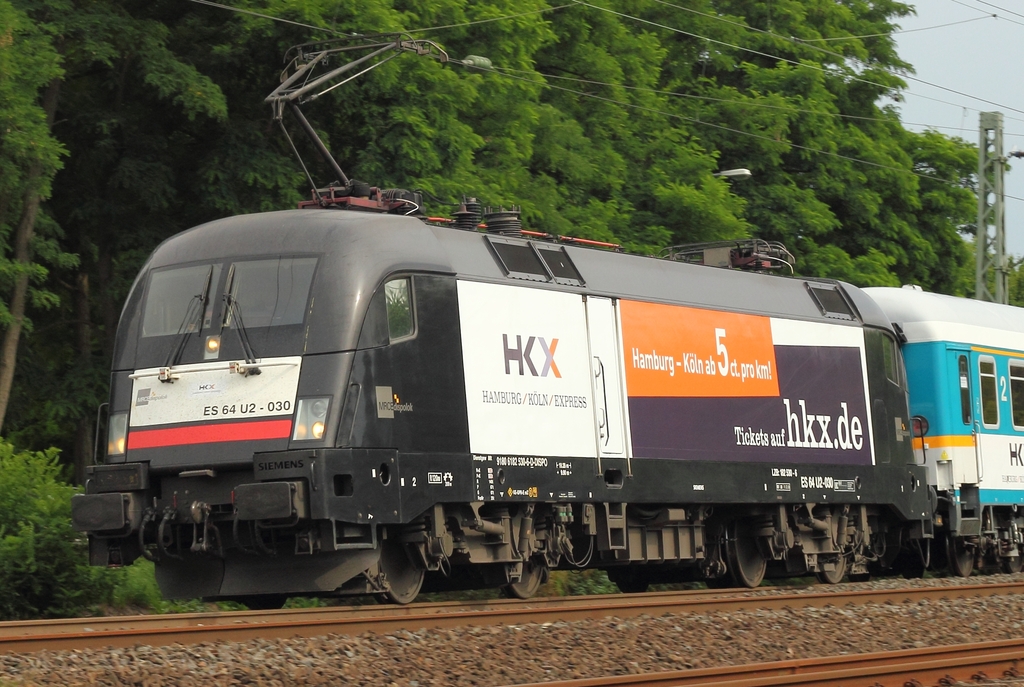 TXL ES 64 U2-029 (182 529) mit einem leeren Schienenzug nach Italien am 9.7.2012 in Leverkusen-Opladen.