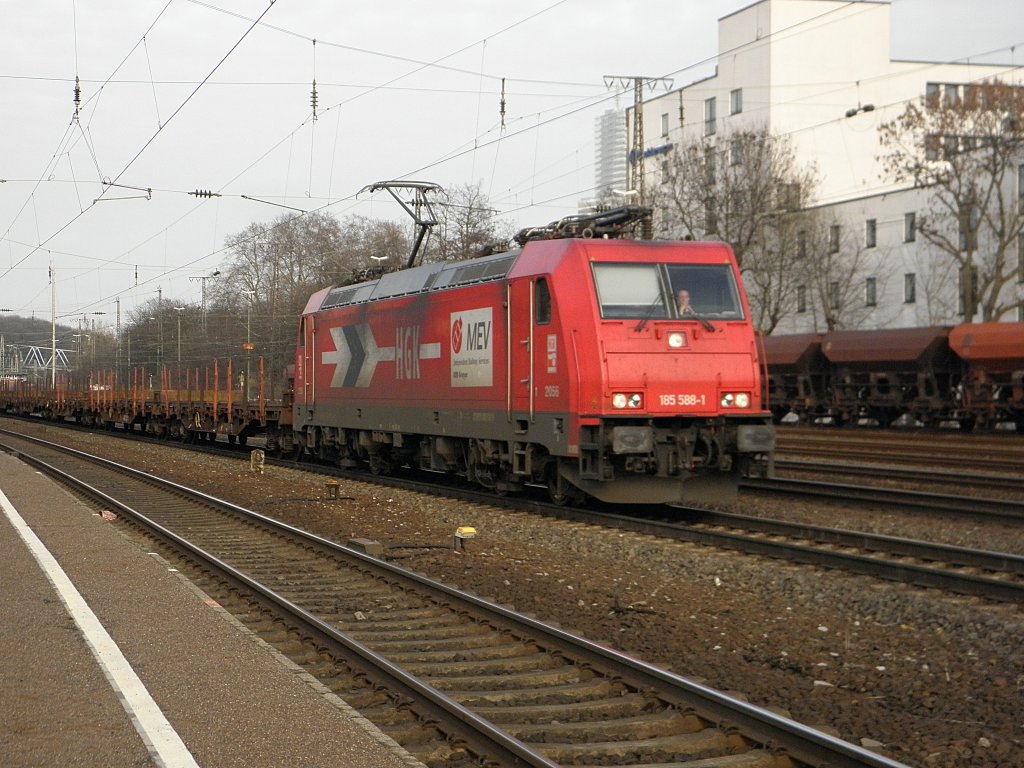 HGK 185 588-1 fährt mit einem Güterzug durch Köln West am 12.2.2011