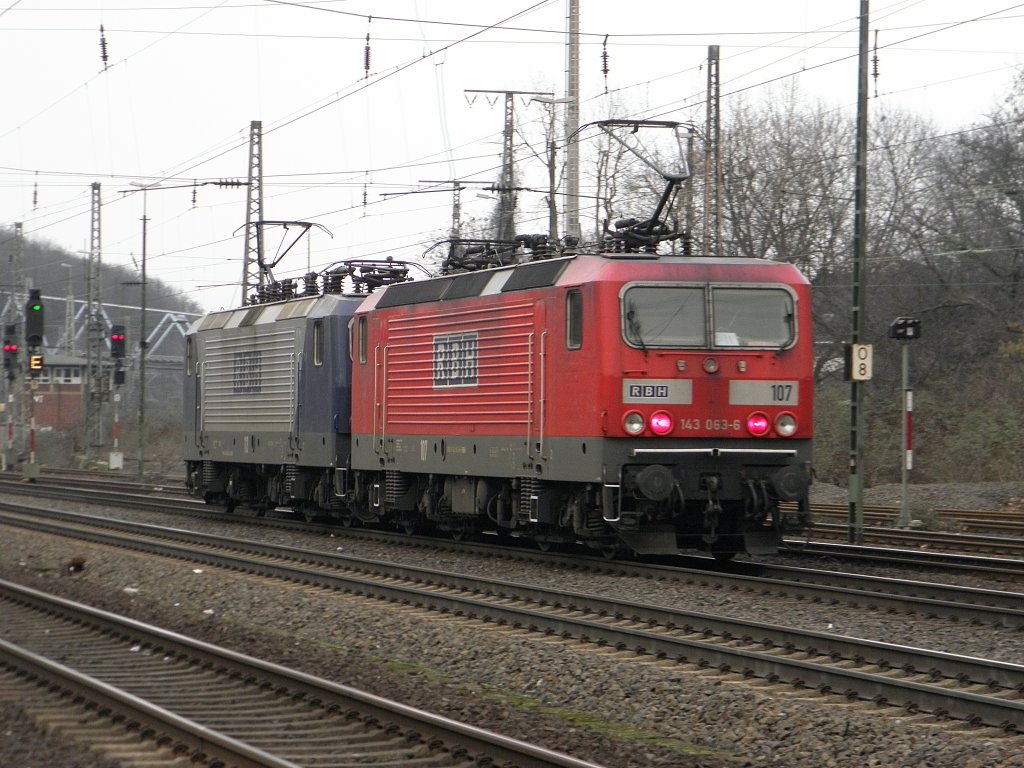 RBH Doppel 143 053 fährt durch Köln West am 12.2.2011