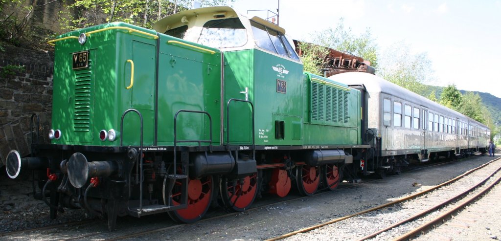 B.E.G. Inge V65 mit dem Ahrbömmel im Brohler Güterbahnhof am 29.8.10 (zum Bild)