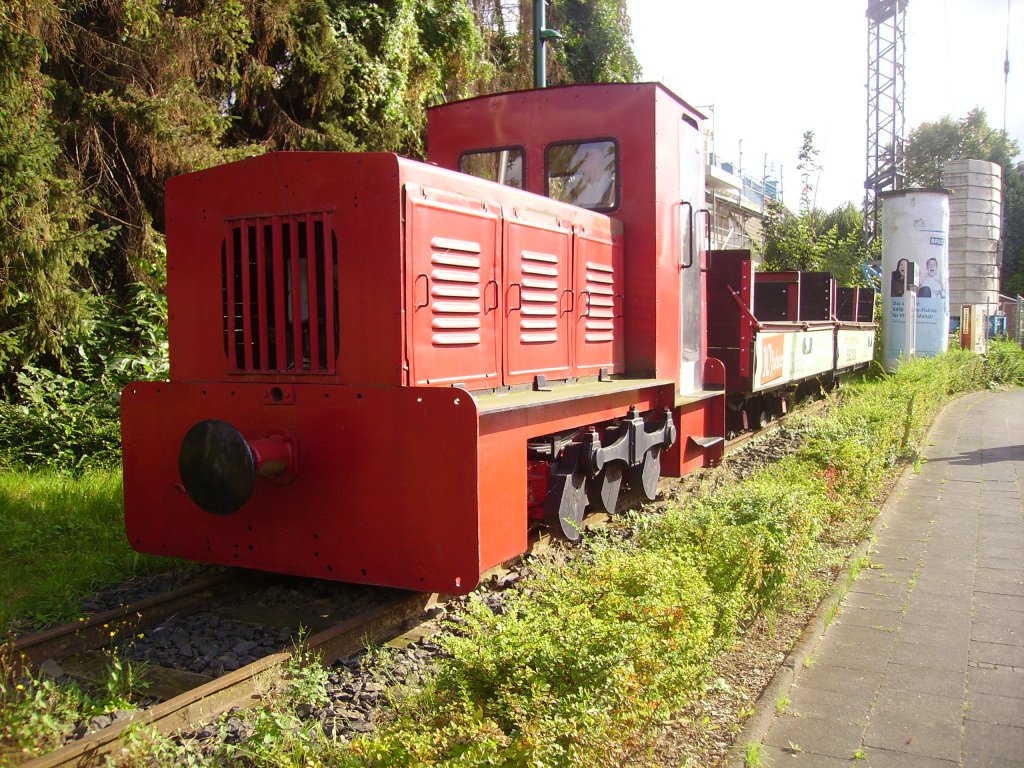 Eine Diesellok vom Restaurant "Zur Glocke" die mit der Bröltalbahn zusammen hierhin befördert wurde steht als Denkmal in Hangelar (zum Bild)